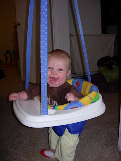 Rylee has been grumpy ALL day today…little punk. She just wants to be held, which means Momma hasn’t accomplished anything. So, in an effort to keep my tired arms from falling off, I decided it was time to try the Jonny-Jumper. As you can see by the photos, Miss Rylee LOVED it! And, it wore her out so much that she’s been asleep for the last two hours. Now that’s what I call a good toy!