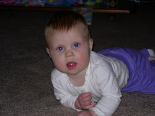 Rylee has been army crawling for about a month now and she’s getting REALLY good at it! She is working on figuring out what to do once she gets up on all fours. For now, she just plops back down and army crawls to whatever it is she wants. This particular day, it was the camera!