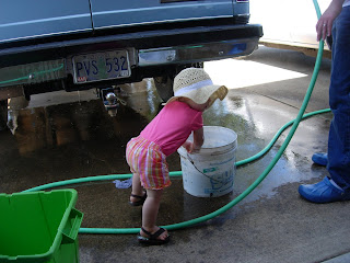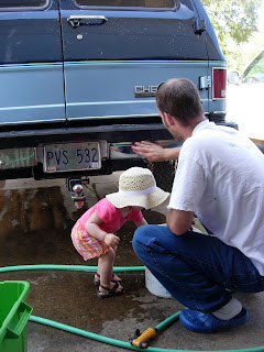 Andy decided to wash all the vehicles one afternoon. Rylee and I went outside to play and, being the big helper she is, decided she needed to help her daddy wash the Suburban! She ended up soaked, but who cares! She was having fun.