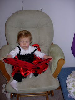 This Halloween, Rylee was a ladybug. Grammy bought her the costume back in September. Every Thursday after that, Rylee would wear the costume over at Grammy’s house! I ended up and had to work on Halloween, so Andy dressed Rylee up and to take Grandma Rice grocery shopping. Rylee ended up and got a KitKat bar at the gas station! Since I didn’t get to see her dressed up, before bed I put her back in her costume and tried to snap a few photos. She was not very cooperative, so I did what I could!