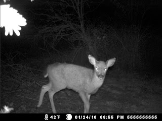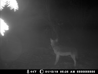 Andy’s dad got a trailcam for Christmas. Within a couple of weeks he put it up on a tree in the back of our property. We pulled the camera last week and there are some of the shots we got. By the way…that’s not Dante, that’s a coyote!!