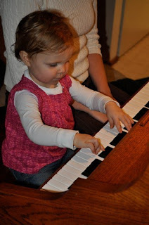 These photos are back from September. We had dinner over at Grandad’s house one night when Auntie Kristen was in town. Rylee discovered Dad’s piano and now every time we go over there, she can’t leave without playing for a few minutes. Grammy also has a piano so she spends a lot of time playing over there as well. At home, we have a little keyboard that she likes to play too. Who knows…maybe there are piano lessons in her future…