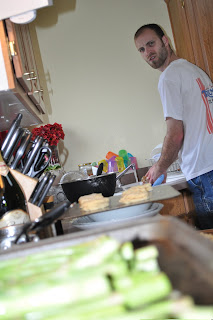 Anyway, I digress…since I do things so simply on weeknights, I typically try and pull out all the stops on weekends and holidays…especially holidays. I hosted Easter for our families this year. There were 12 of us, including Monster. I told everyone that dinner was at 2:00 and…(drumroll please)…we sat down to eat at 2:05 PM! Dinner was fantastic and everyone had a good time. I wish we would have taken photos of the final dinner product because it was just that good. I am in no way taking all the credit for this entire from scratch dinner, my sis was a HUGE help, my mom brought the rolls and my MIL brought some homemade mac-n-cheese.