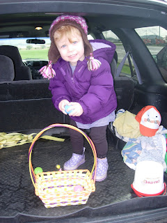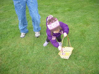 These are some of the pictures I took of Rylee at the Easter Egg hunt that my work hosted on Saturday morning. She wasn’t too sure about it to begin with, but she got into it after a minute. She “found” around 6 or 7 eggs…just the perfect amount. I’m a little bummed you can’t see her super-cute outfit. She had black leggings with lace trim, and a purple and black shirt-dress type thing and her purple boots. She even let me put her hair in pigtails that she kept in for at least 45 minutes! All in all, a successful egg hunt!