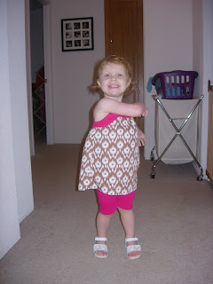First of all, SO sweet that Andy "requested" the outfit. That's adorable (and *hello* SHE is adorable IN it!). Kudos to Dad for his bravery taking the toddler to work! That's awesome!Also, I hate when the "a" is dropped. With no warning. It's like they only practice behind closed doors and then one day it's just gone. Quit cold-turkey. However, Carter has (for some unknown reason) picked it back up–and I melt over it. Every time.