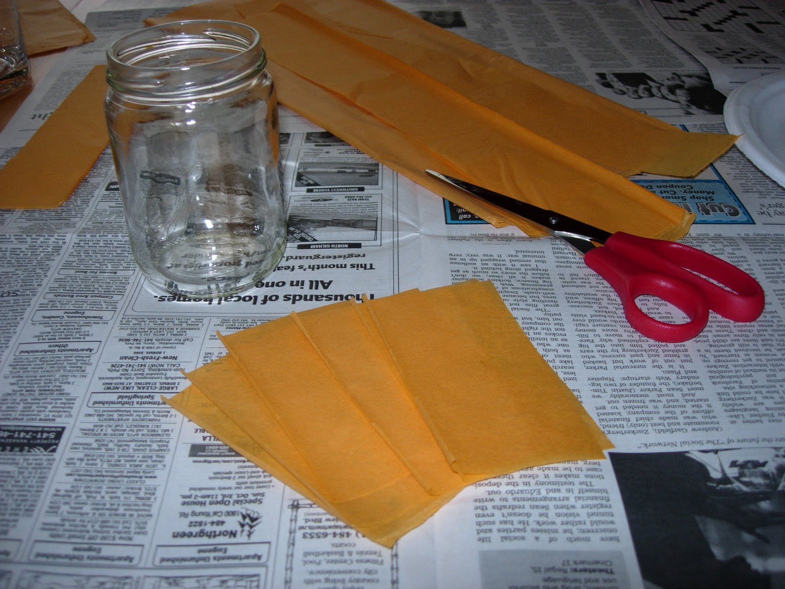 - Tissue paper- orange and black {for pumpkins, obv} or even white and black to make ghosts