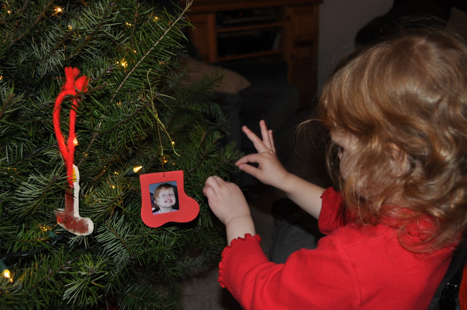 Placing the ornament “just so”. {I love how she is holding her fingers}