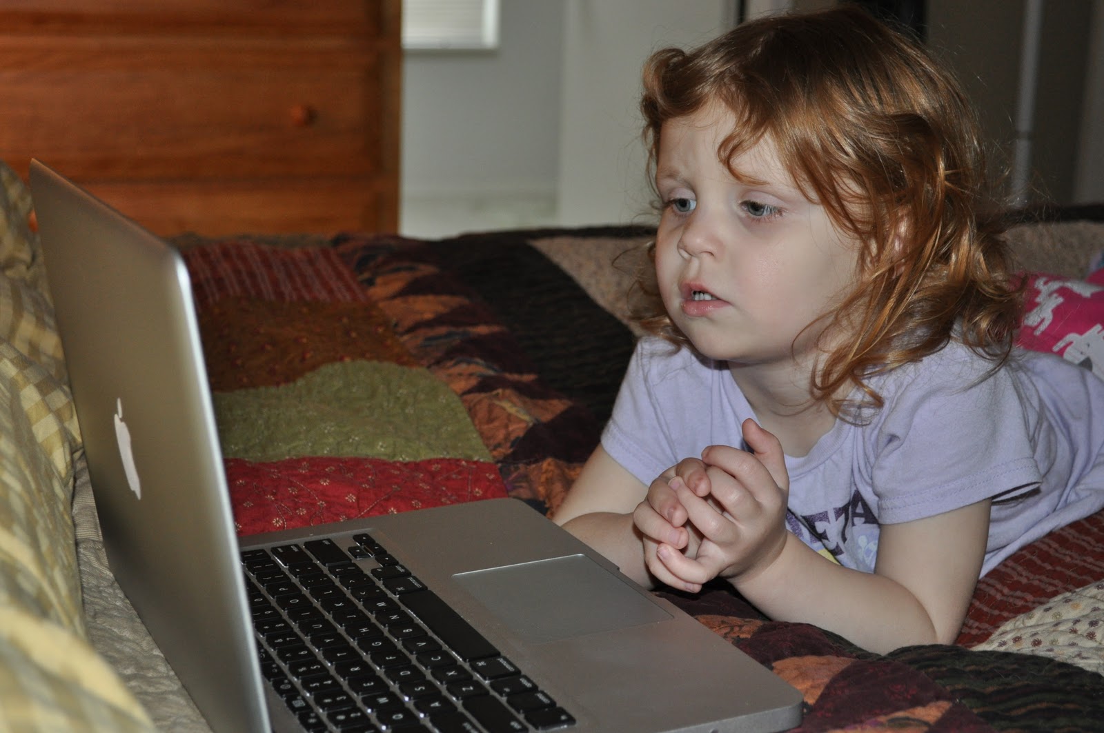 Andy soon left to go help his Dad with something over at his Grandparents’ house…AKA the never ending project. Rylee and I stayed in our jammies, ate some breakfast and watched some cartoons. Then decided we needed to Skype with Auntie “Telli”. Since we have the best Internet connection in my bedroom, we headed back in there.