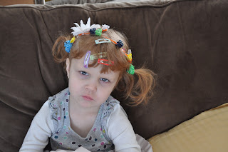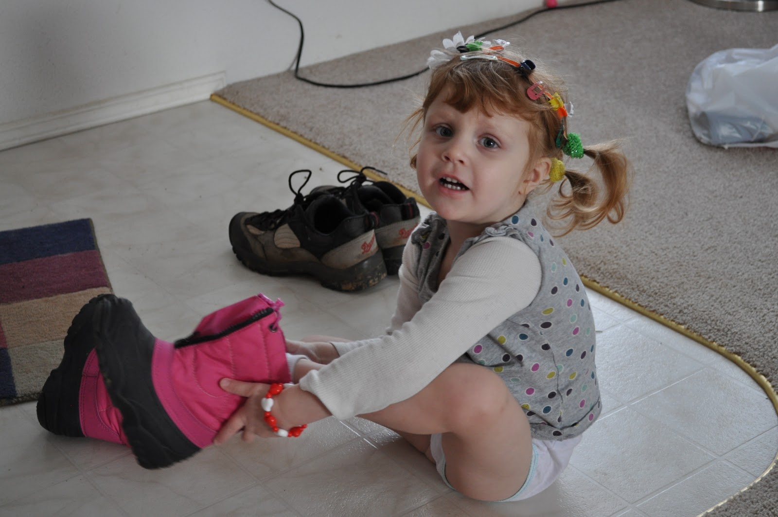 {“What do you mean we can’t go outside yet!?” Like the clippies? We were killin’ time waiting for Daddy to get home. All her choices.}
