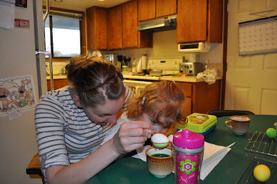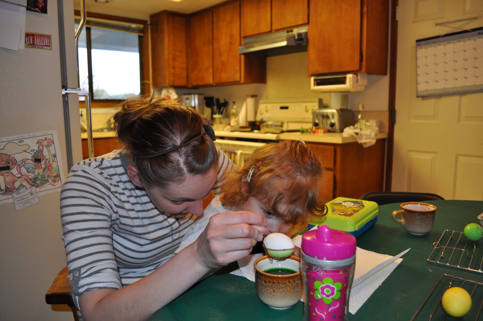 Last weekend we went over to my dad’s house for a little early Easter egg decorating. Rylee was totally into it! I have such fantastic memories of holidays growing up and I hope we are making those same kind of memories for Ry.