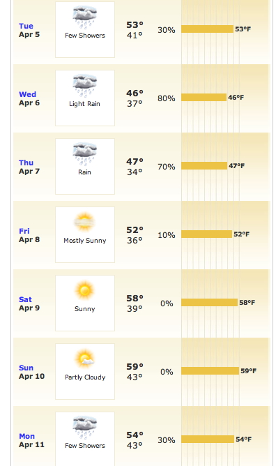 And even though I know Spring Time in Oregon means rain, light rain, showers, partial showers and/or drizzles, I tend to frequent weather.com.