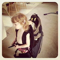 Testing out the hiker-pack we’re letting a friend borrow. // Showing me her art project from school.
