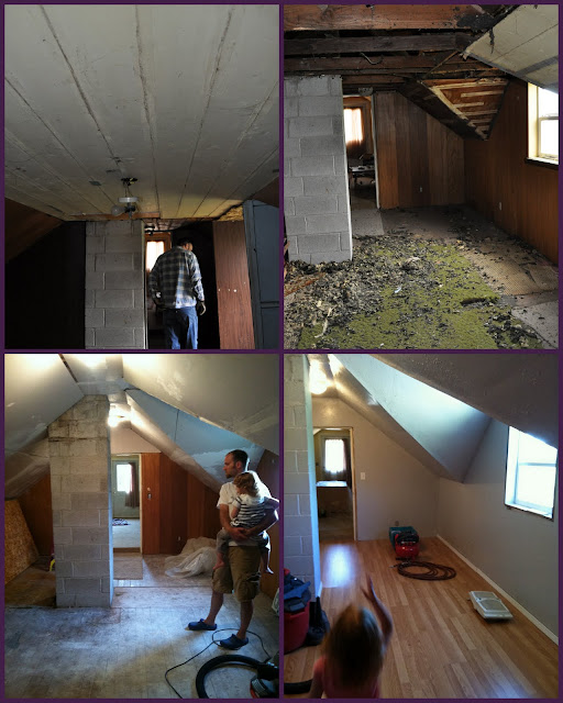 I saw the potential in that dingy, poorly lit, unfinished upstairs and the stairway that reminded me of something from a bad horror flick. But somewhere over the last 2 months, a dozen or so nights of going to sleep without Andy next to me and umpteen bazillion hours of work on his part I lost sight of the overall project.