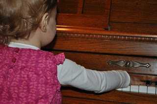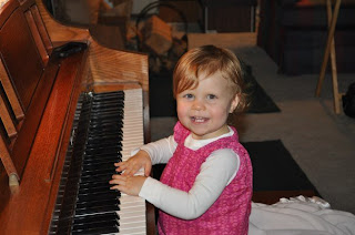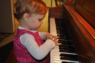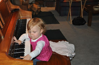 These photos are back from September. We had dinner over at Grandad’s house one night when Auntie Kristen was in town. Rylee discovered Dad’s piano and now every time we go over there, she can’t leave without playing for a few minutes. Grammy also has a piano so she spends a lot of time playing over there as well. At home, we have a little keyboard that she likes to play too. Who knows…maybe there are piano lessons in her future…