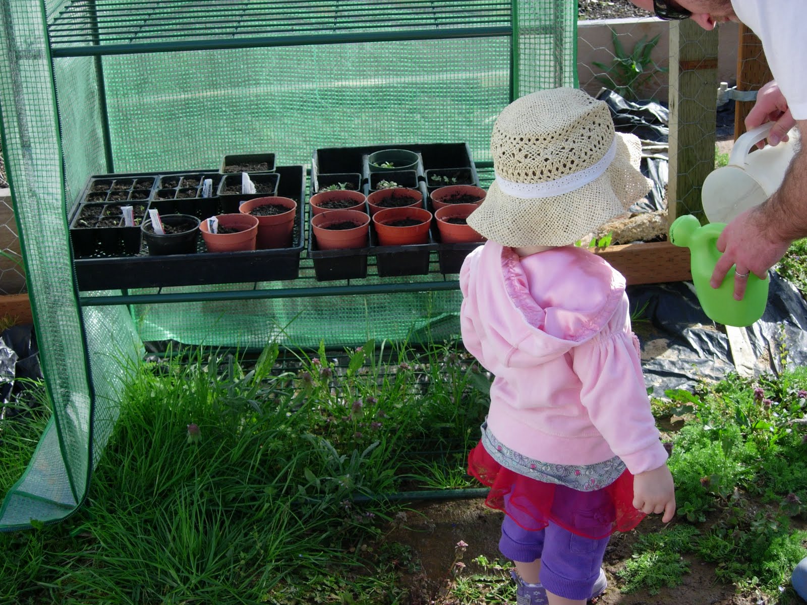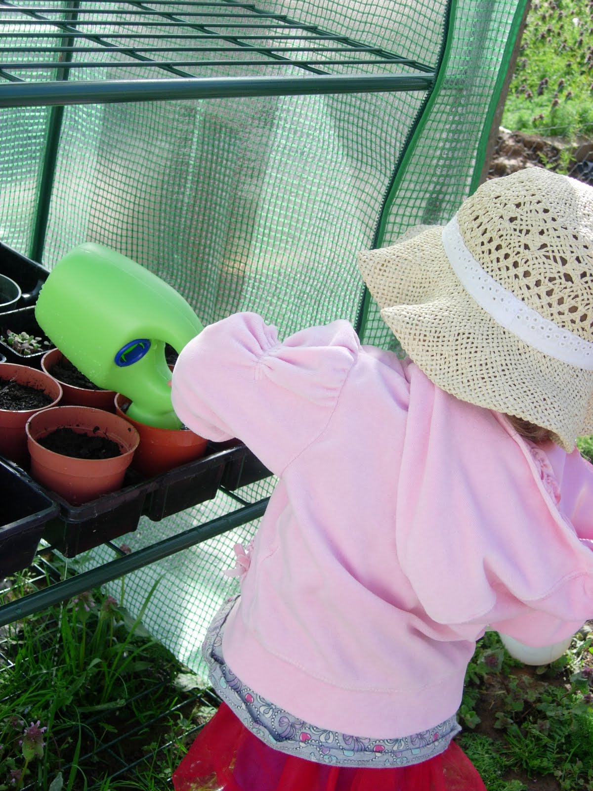 My little greenhouse had been knocked over in the storm. So I picked it back up. So much for all my hard work. Well, it’s a good thing my mom not only has one green thumb, but two (and 10 green toes) and about billion starts already going in her greenhouse(s). I made sure to let Ry know that all of her watering efforts from the weekend were not in vain…I got plenty of cute pictures!