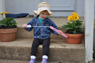 Ry is not the biggest fan of grass in her shoes so once we get to the back of the property where the cut grass is a lot longer, she always asked to be picked up. Daddy always obliges. Mama? Not so much.