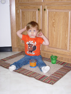 Auntie Kristen (surprise, surprise) surprised Rylee with a new Beaver T-shirt and hat! Trying to get Rylee to slow down to take a picture can be difficult, and yes, I did chase her into the bathroom to get this one! It’s a game for her. The other night, I was making dinner and caught her sitting on the love seat watching the game…she seemed to enjoy it, and as Andy put it, it’s practically educational; she can learn numbers and colors!